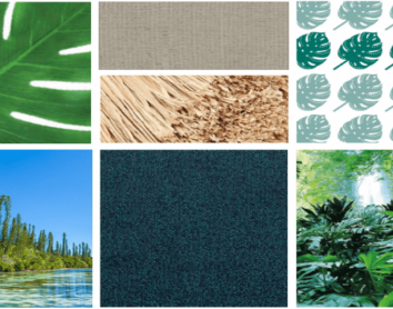 A320neo型機のプレミアムエコノミーの機内デザインは、ニューカレドニアの魅力の一つである植物をテーマにしました。機内で使われるモチーフはニューカレドニアの自然とその無類の生物多様性にインスピレーションを得たものです。ニューカレドニアでよく見られるフィロデンドロンや細長い尖塔のような樹冠を持つナンヨウスギが描かれています。そのニューカレドニア固有の植物によって、イル・デ・パンなど多くの観光地が有名になっています。
